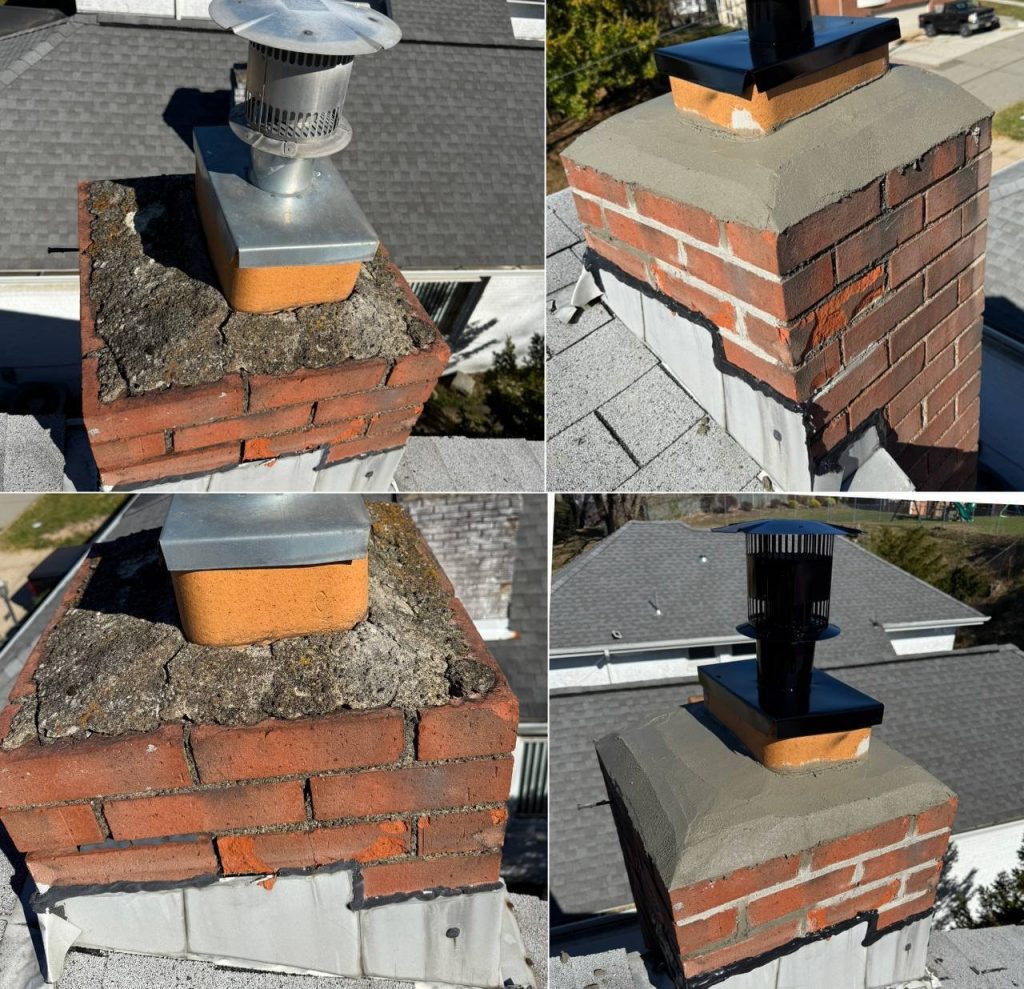 Our approach combines traditional masonry techniques with modern waterproofing solutions. We provide custom chimney caps, protective coatings, and flashing integration to ensure compatibility with asphalt or slate roofs.